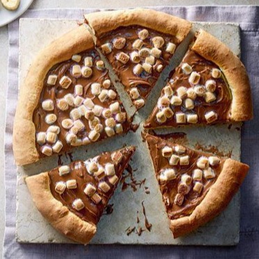 Our warm pizza crust is the perfect canvas for a generous layer of creamy Nutella, spready evenly to every corner. As the pizza bakes to perfection, the Nutella melts into a rich, chocolatey lava, creating a mouthwatering experience. For an extra special treat, we recommend adding marshmallows for a gooey, campfire-inspired treat.