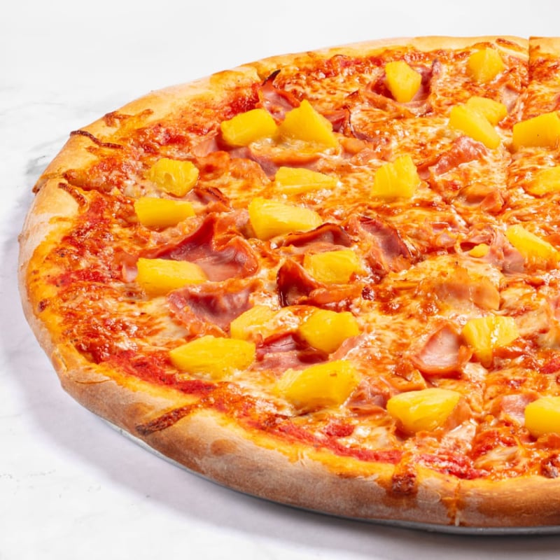 Embark on a flavor adventure with our The Wedgeman's Big Hawaiian Pizza. We start with our legendary homemade sauce, made from vine-ripened tomatoes and a secret blend of herbs and spices. Then, we layer on a generous portion of our premium mozzarella blend, followed by a tropical duo of toppings: Double Ham and Sweet Pineapple.