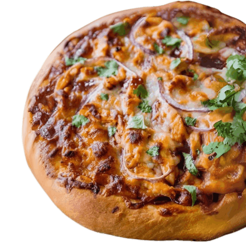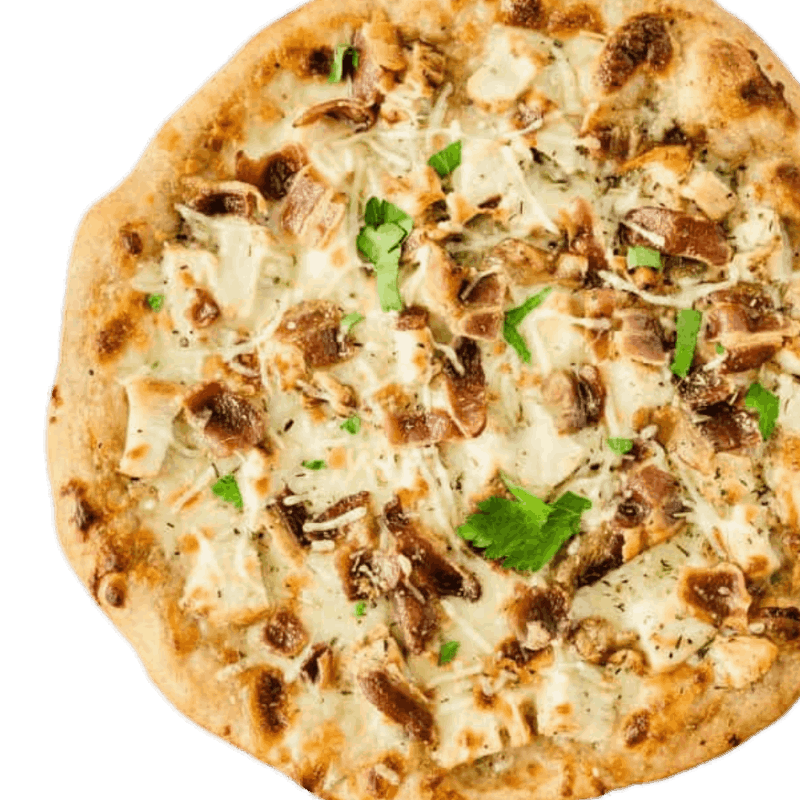 Indulge in the perfect blend of classic flavors with our Caesar Chicken Pizza. A crispy crust is topped with a creamy Caesar dressing, juicy grilled chicken, crispy bacon and grated Parmesan cheese. Each bite is a burst of flavor, combining the savory and tangy elements of a Caesar salad with the satisfying crunch of a pizza.