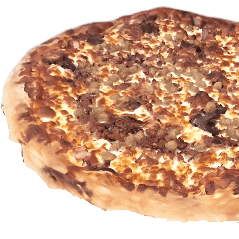 Our dough is made fresh daily and hand-tossed to perfection, resulting in a crust that's both crispy and chewy. Each pizza is baked in our ovens until the cheese is melted and bubbly, the toppings are perfectly cooked, and the crust is golden brown. It's a burger lover's dream on a pizza!