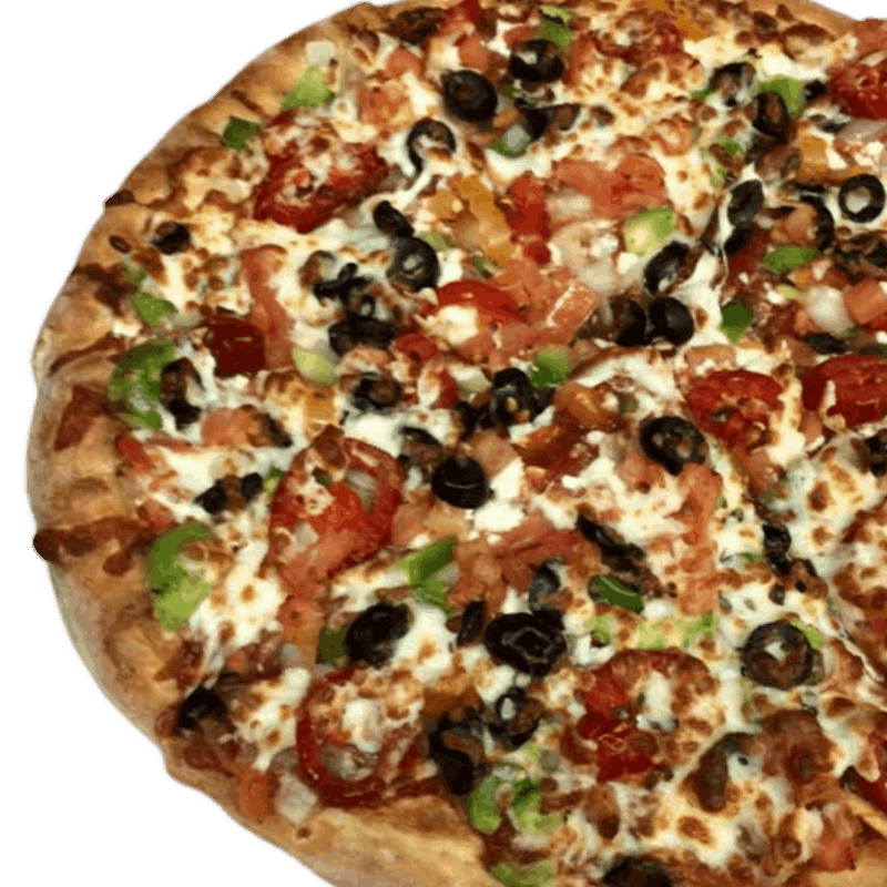 Crumbled Feta, Onion, Black Olives, Hot Peppers, Green Peppers, Tomato