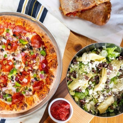 Elevate your pizza night with our special deal: A medium pizza, a fresh Caesar salad, and crispy garlic puffs. It's the perfect combo to satisfy every craving, making it a complete and delicious meal.