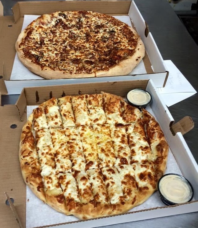 A large 16" pizza with 3 toppings and a 12" garlic finger special for only